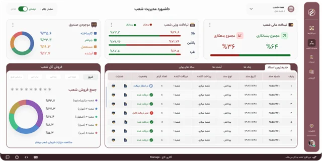 مشاهده مانده مشتریان به تفکیک هر شعبه